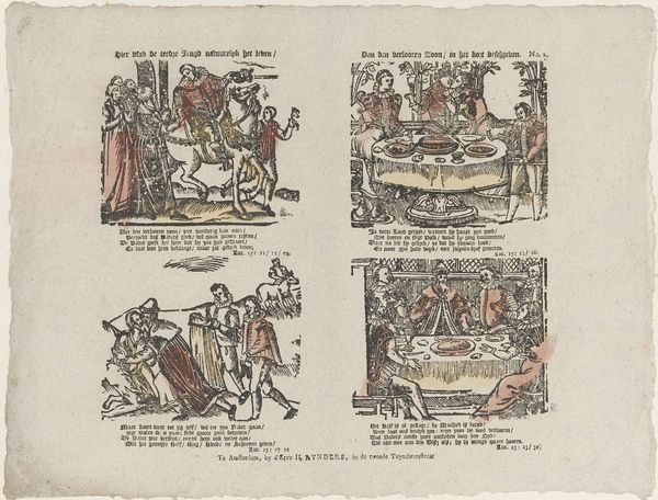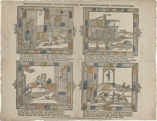 This print, made in Amsterdam by Johannes Kannewet, visualizes a world turned upside down. The four scenes depict monkeys engaged in human activities, a common satirical trope in the Netherlands. The print ridicules various aspects of Dutch society, reflecting social tensions of the time. We see monkeys mismanaging finances, engaging in drunken revelry, and even mimicking religious instruction, perhaps commenting on the perceived moral failings of the Dutch Golden Age. The print's existence speaks to a vibrant print culture where social commentary, often biting, found a wide audience. Prints like these were part of a larger visual culture, consumed by a diverse public. To fully understand this artwork, historians turn to sources beyond the image itself, exploring period pamphlets, popular songs, and economic data to reconstruct the world in which it was created and consumed. The meaning of art, after all, is always rooted in its specific social and institutional context.