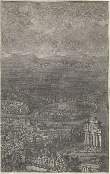 Giuseppe Vasi's rendering of Rome, likely created mid-18th century, captures a city caught between its imperial past and its status as a site of pilgrimage and the Papal seat. Giuseppe Vasi dedicated his career to etching views of Rome, catering to the tastes of wealthy Europeans on the Grand Tour. This image creates meaning through its detailed depiction of Roman architecture, both ancient and modern. We see the Aventine Hill, one of the famed Seven Hills of Rome, but the eye is drawn to the meticulously rendered buildings, perhaps suggesting a desire for rational order. The inclusion of the Pyramid of Cestius reminds viewers of Rome's long history, one layered with varied architectural and cultural influences. The culture of the Grand Tour fueled a market for such images, defining Rome as a site of cultural tourism. To understand this image better, it helps to study guidebooks of the time, tourists' journals, and the biographies of artists such as Vasi. Art always exists within a complex set of social and institutional relations.