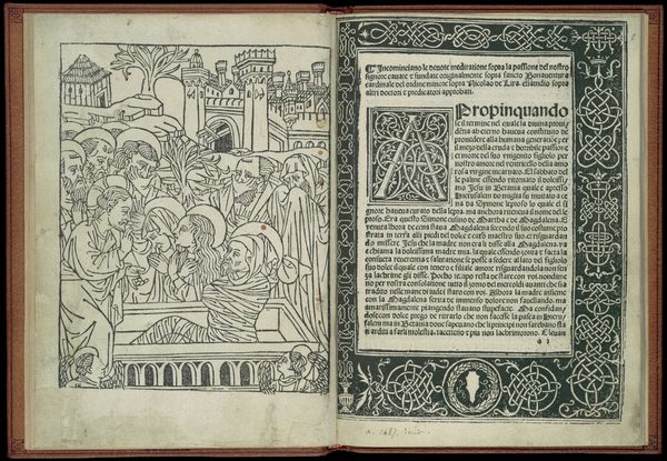 Editor: Here we have “Ce est ung tractat de la noble art de leguille ascavoir ouvraiges de spaigne…” a print, a woodcut to be precise, and engravings from Willem Vosterman, dating to between 1527 and 1540. It depicts scenes of textile production, a book cover design really. What strikes me is the clear connection to craft, and it makes me wonder about its audience and how such a work would be received. What can you tell me about it? Curator: Well, immediately I see the confluence of labor, materiality, and consumption, particularly within a rising merchant class in the Northern Renaissance. Think about the laborious process of creating these woodcuts and engravings. These images weren't just aesthetic; they advertised the "noble art of the needle," effectively commodifying needlework. Notice how Vosterman highlights the tools and techniques, the means of production are very visible. This elevates these crafts while simultaneously turning them into objects of desire, something to be consumed. Editor: That's a fascinating way to put it. So, it’s not just a representation, it’s part of the very economic system it depicts? Curator: Exactly. Consider the paper itself, the ink, the skilled labor required. All these materials and processes become part of the artwork’s narrative. It is about use-value and exchange-value of craft, the social implications, not just a beautiful image. Editor: That perspective really opens it up. I was initially focused on the figures and their activities, but now I see how the very materiality speaks volumes about the economics of the time. Curator: Precisely. Seeing the layers of production behind what’s presented helps to avoid idealizing the artistry of this period without truly understanding the conditions of its execution. Editor: I’ll definitely look at early prints differently now, thinking about materials and labor in addition to just the aesthetics. Curator: Absolutely, every work has those production considerations deeply intertwined with its cultural statement.