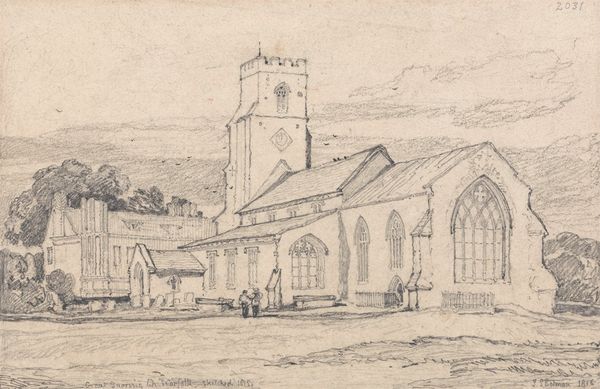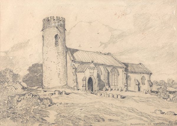 Editor: So, we're looking at "Knapton Church, Norfolk, from the North-East," a pencil drawing done in 1817 by John Sell Cotman. There's a quiet, almost melancholy feel to it, wouldn’t you agree? The precision in the lines contrasts with the slightly blurry background. What strikes you about this piece? Curator: Precisely! It sings to me of time's gentle, relentless passage. See how Cotman's delicate lines describe the church – that magnificent structure! – juxtaposed with the fleeting, atmospheric quality of the sky. Almost as if he's capturing a memory, not just a building. Do you get the sense of how he sees the underlying geometric structure? Editor: I think so. It’s not just a picturesque scene. It’s like he's stripping it down to its bare bones, you know, focusing on form and shape. Curator: Exactly! Form dancing with feeling! And have a little ponder about Cotman’s state of mind. He often sought refuge in nature and architecture, wrestling with his own demons. Could this precise depiction of Knapton Church be a meditation on permanence versus transience? Editor: That’s an interesting idea. Maybe he’s finding solace in the solid structure of the church. The more I look, the more I see beyond just a pretty drawing. There's depth. Curator: I couldn't agree more. It's like looking into a visual diary, isn’t it? It makes one wonder what inner storms he was weathering whilst sketching this serene facade! What a dance of contrasts and what a privilege to witness. Editor: Definitely. It is more layered now. Thanks for sharing your insights!