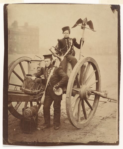 Willem Frederik Piek Jr. made this gelatin silver print, titled Shots in Amsterdam, Warnemünde, and Warnsborn, using photographic processes rooted in industrial production. The sepia tones and slightly soft focus are characteristic of this photographic method, which relies on chemical reactions harnessed and controlled in factory settings. The gelatin emulsion, spread on a paper base, captures a fleeting moment with surprising clarity given the technology of the time. Photography in this era was becoming increasingly accessible, yet still required expertise in chemistry and optics, which Piek clearly possessed. The image itself, a candid snapshot aboard ship, belies the labor involved in its creation. The careful composition, capturing figures in dynamic motion, suggests an awareness of both the science and art of image-making. Ultimately, this photograph, while seemingly a casual snapshot, represents the intersection of industrial technology, artistic vision, and social context, challenging our notions of both art and craft.