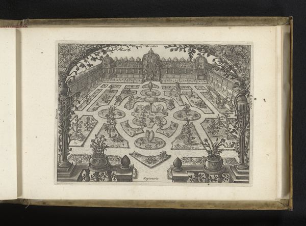 Editor: This is "Paleis Huis ten Bosch in vogelvlucht," an engraving by Jan Matthysz., made in 1655. The sheer detail is incredible; you can see every tree, every parterre! The perspective is really interesting, too, this bird's-eye view emphasizing control over the land. How do you interpret this work? Curator: I see a potent assertion of power, rendered through landscape. This isn’t just a picture of a palace and its grounds; it’s a statement about the ability of the Dutch elite to manage and shape their environment, mirroring their control over colonial territories and trade routes. Note how the rigidly geometric layout contrasts with the surrounding natural landscape – a deliberate act of imposing order. The engraving almost seems to dictate where the viewer looks. How might such control intersect with issues of class and social stratification during the Dutch Golden Age? Editor: So the visual control here symbolizes real-world power dynamics? That’s fascinating. I was just thinking about it as a pretty picture of a palace garden. Curator: Precisely. Consider the political climate in 1655. The Dutch Republic was consolidating its power, and images like these served to legitimize and celebrate that dominance. These manicured gardens could also represent the concept of 'cultivating' society, molding and shaping its populace much like the landscape itself. Editor: That gives me a lot to think about. I hadn't considered the way the physical space reflects ideas about social engineering. Curator: Art like this reminds us that landscapes are never neutral. They're loaded with cultural, political, and social meanings. Editor: This was great, thank you for this interpretation of this engraving and teaching me to consider the ways art displays complex politics and ideology!