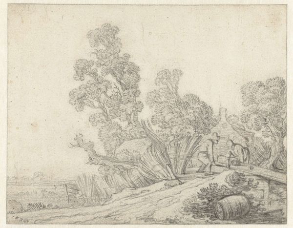 Pieter de Molijn made this drawing, 'Sloping country road with a horseman', using pen and brown ink in the first half of the 17th century. It depicts an everyday scene of rural life in the Netherlands. At the time, the Dutch Republic was undergoing significant economic and social changes. The country had gained independence from Spain and was experiencing a golden age of trade and prosperity. This economic growth led to a shift in social values, with a greater emphasis on individualism and personal freedom. De Molijn's drawing captures this spirit of independence and self-reliance, portraying ordinary people going about their daily lives in a natural setting. The horseman symbolizes the era’s expanding trade networks and increasing mobility. The resting figures in the foreground emphasize the importance of leisure and contemplation in a changing society. To understand the drawing better, you might investigate the economic and social history of the Dutch Golden Age. Exploring maps, trade records, and personal diaries from that era can provide more insight into the world that De Molijn was depicting.
