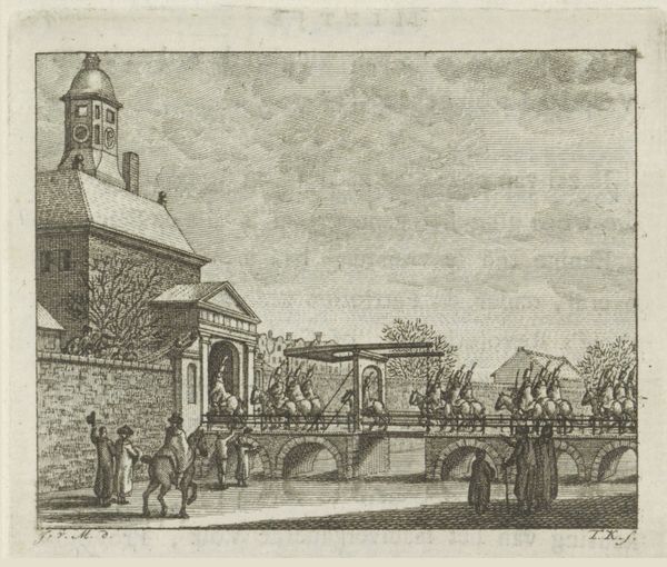 Curator: It's like stepping into a storybook, isn't it? There's a quiet stillness to this engraving that really captures the imagination. Editor: Absolutely! I love how evocative it is. Looking at Hendrik Spilman’s "Gezicht op de Linschoterpoort te Oudewater," dating it sometime between 1750 and 1792, what strikes you first? For me, it's this almost melancholic feel, this quiet isolation. All that detailed work really invites you into the image. Curator: Precisely! It is worth considering this drawing is held at the Rijksmuseum, hinting at its perceived national and cultural significance. Oudewater, with its imposing city gate. But notice, even this architectural stalwart seems to blend so seamlessly with the waterways and nature surrounding it. Spilman, of course, capturing more than just a physical place but perhaps a particular mood, a vision. Editor: Good point, but in reality, cityscapes like these are about controlling populations, creating fortifications, or even announcing imperial expansion. Spilman chooses instead to offer a different picture of tranquility and, frankly, quietude. The baroque style is toned down, almost subdued. It does however create an atmosphere of dreaminess, doesn't it? I feel drawn to this watery world as if to cross over and leave behind the present time. Curator: Indeed, the gentle reflections in the water add to that feeling, a blurring of reality and something more ethereal. Spilman wasn’t only documenting; he was curating a mood, a response to a place and a time. Editor: Maybe that’s where art finds its power – in these individual interpretations. How we filter reality through the lens of our experiences, creating not just records, but encounters. This engraving becomes a portal, not just to Oudewater, but into Spilman’s understanding of it. Curator: And ultimately, into ourselves and how we connect to spaces, times, feelings far removed from our own reality, but still very familiar to us as people. Editor: True, makes you think what other gems lay hidden behind detailed lines just waiting to be uncovered!