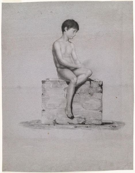 Anne Brigman created this photograph, titled *The Wondrous Globe*, using gelatin silver print, sometime in the early 20th century. A nude boy sits on a rocky outcrop, gazing intently at a sphere resting nearby. Brigman uses light and shadow to sculpt the boy’s body, creating a soft, almost dreamlike quality. This ethereal quality invites us to consider the photograph as more than just a depiction of a scene. Brigman uses the formal elements to suggest a deeper exploration of symbolism and meaning. The sphere is not just a ball but an emblem of potential and the unknown. The child becomes an allegory for curiosity and the human desire to understand the world. The composition encourages us to ask what the child sees in the globe, and what it represents for us. The photograph serves as a catalyst for introspection. Brigman uses form to open a space for us to question and reflect on the mysteries of existence.