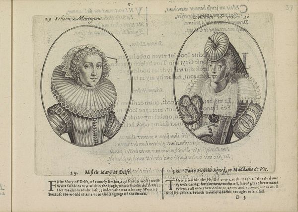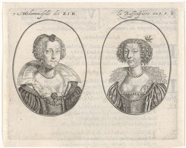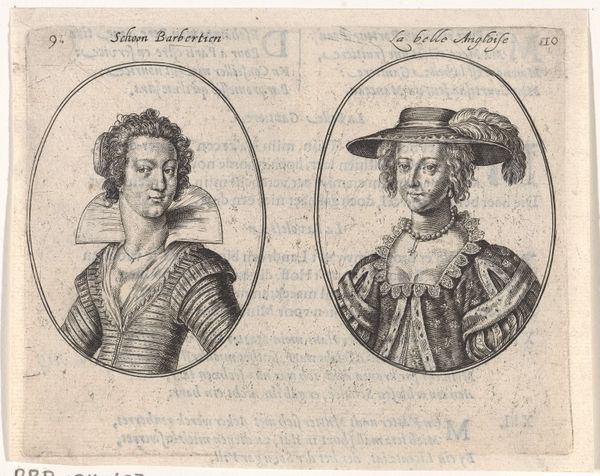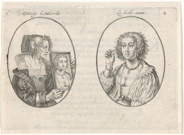 Crispijn van de Passe the Younger made this print of a courtesan and her chambermaid using engraving, a printmaking technique, sometime before 1670. Look closely, and you'll see that the image is composed of a dense network of lines, meticulously incised into a copper plate. The artist would have used a tool called a burin to cut these lines, each one catching ink and transferring it to the paper during printing. The density and direction of these lines create the illusion of light and shadow, defining the forms of the two figures. Engraving was a skilled and laborious process, demanding precision and control. In the context of the 17th century, prints like these played a crucial role in disseminating images and ideas, acting as a kind of early mass media. The very act of engraving, with its intricate detail and technical mastery, elevated the status of the image, transforming it from a mere likeness into a valuable commodity. Considering the social status of the women depicted, this print blurs the line between the fine and the applied arts; it invites us to contemplate the complex relationship between labor, representation, and the market.