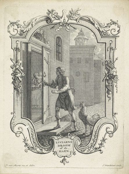 Reinier Vinkeles etched "Moord op Willem van Oranje, 1584" using etching in the late 18th or early 19th century. The scene, rendered in monochrome, captures a dramatic moment of assassination, staged against an architectural backdrop with a classical column. The composition is structured around the stark contrast between light and shadow, which heightens the emotional intensity. Vinkeles uses line and form to guide the viewer's eye from the victim to the assassin, creating a dynamic interplay of movement and stillness. The detailed rendering of textures, from the clothing to the stone, adds a layer of realism. This contrasts sharply with the theatrical quality of the scene, reflecting the cultural and political symbolism of the event. Note how the structured use of perspective draws us into the heart of the drama, engaging us not just in the narrative but also in its broader implications. The print serves as a potent reminder of how historical events are not just recorded but actively constructed through artistic representation.