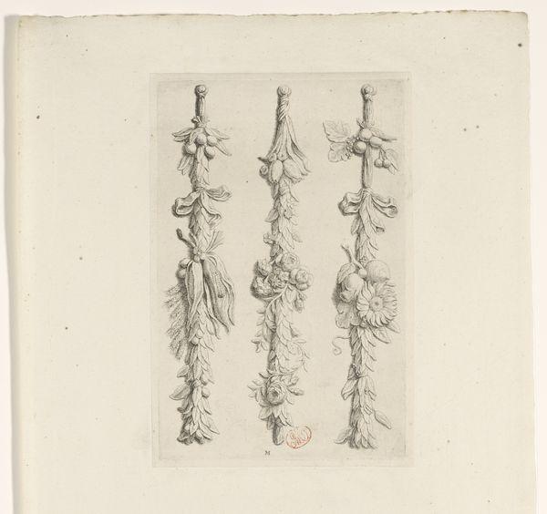 These two floral reliefs were created by Gustave Eugène Chauffourier, although the date and medium remain unconfirmed. Note the striking composition, where two curved shapes are presented against a dark backdrop, drawing us into their intricate details. The arrangement and composition of these reliefs invite a semiotic reading, where each element can be viewed as a signifier. The curves, framing the floral motifs, are not just structural; they suggest an embrace, a containment of nature’s abundance. Each flower, leaf, and fruit is carefully rendered, creating a textural contrast that emphasizes their distinct forms. These forms can be interpreted as signs of natural vitality, harmony, and perhaps even a comment on the ornamental and symbolic role of nature in art. Chauffourier's reliefs invite us to consider how he has destabilized traditional notions of relief work. It challenges our understanding of form, function, and representation within the broader context of decorative arts.