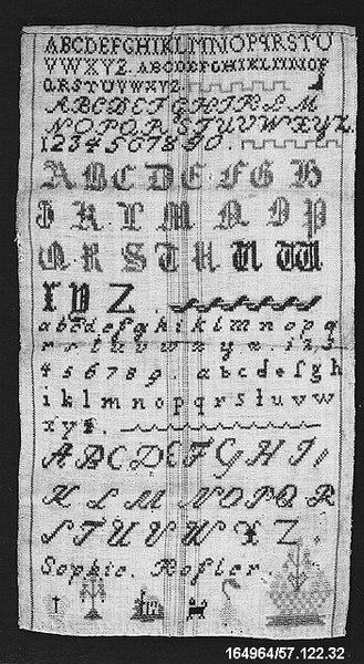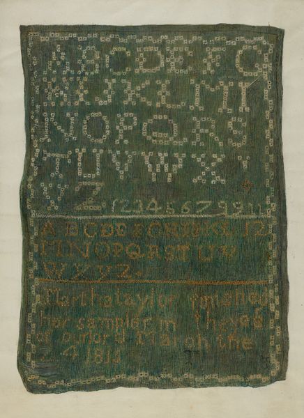 This embroidered sampler was made in 1808 by Jane Simonton Chapman, when she was just fourteen years old. It presents us with alphabets, numbers, and moralistic verses, all meticulously stitched. These elements were not merely decorative; they reflected a young woman’s education and moral upbringing. The sampler is more than needlework; it's a microcosm of cultural values. The letters of the alphabet, repeated across centuries in various forms, remind us of the enduring human quest for knowledge and order. These symbols have evolved from ancient scripts to modern typography, each iteration carrying the weight of history and societal change. Consider the act of repetition itself, akin to a ritual, embedding these letters and values into the young artist's mind. It resonates with primal instincts, reinforcing cultural norms and beliefs. The verses, exhorting virtue and diligence, evoke deep-seated emotional responses related to societal expectations and personal worth. A seemingly simple piece of needlework is, therefore, an intricate tapestry of symbols, interwoven with the threads of cultural memory.