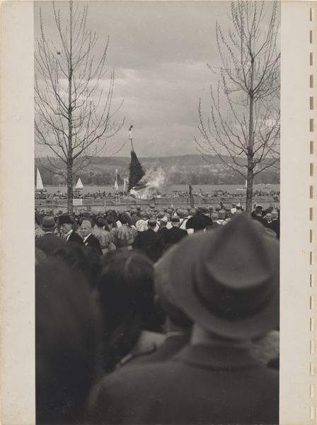 Robert Frank captured this image of a crowd before a waterfront using photographic materials and processes common to the mid-20th century. The grainy texture and high contrast of the black and white print lend the image a documentary feel, reflecting Frank's interest in capturing the everyday realities of postwar society. Photographs like these are made through processes that involve precise timing and chemical reactions, which are essential to understanding the image’s impact. The materiality of the photograph itself—the paper, the emulsion, the developing process—all contribute to its meaning. In particular, the ability to reproduce images cheaply and at scale gives the image a distinctly democratic feel, and aligns it with the rise of mass media and consumer culture. By focusing on the nuances of materials and making, we can appreciate how deeply intertwined artistic expression is with broader cultural and social forces.