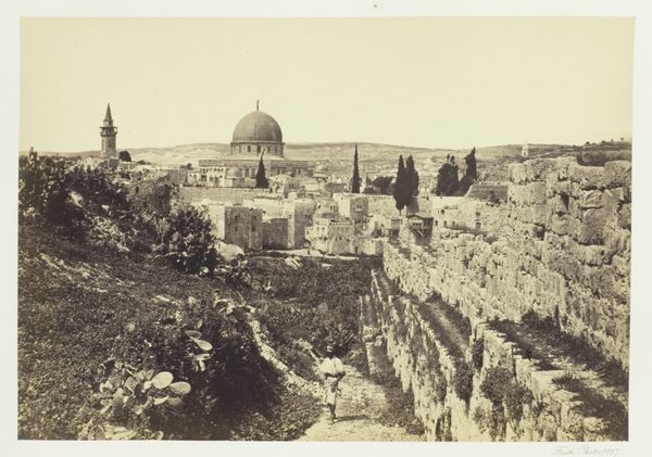 Captured by Felice Beato, this photograph presents the Dome of the Rock in Jerusalem, a site laden with religious significance for both Islam and Judaism. The dome itself, a celestial sphere, rises prominently, symbolizing the heavens and divine presence. Enclosed by formidable walls, this sacred space echoes the ancient city's history as a fortress of faith. The Dome mirrors the Pantheon's dome, each aspiring to connect the earthly with the divine. Consider, too, the ziggurats of Mesopotamia or the pyramids of Egypt; such structures denote humanity’s striving for the heavens. The enduring allure of Jerusalem, depicted here, stirs collective memory and embodies profound emotional weight. These stones, imbued with prayers and historical resonance, evoke deep, subconscious responses, drawing us into a continuum of human experience. The dome persists as a potent symbol, endlessly reinterpreted yet eternally resonant.