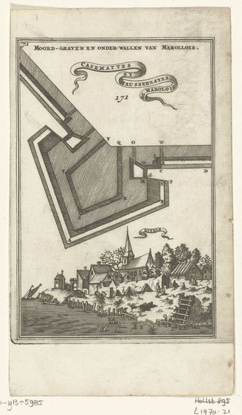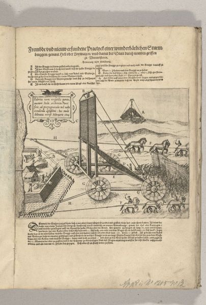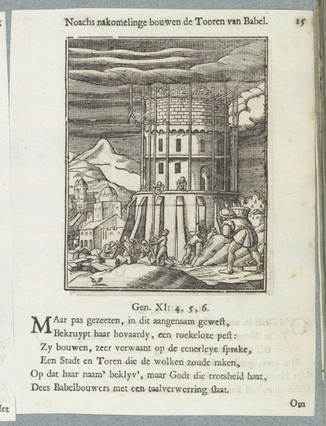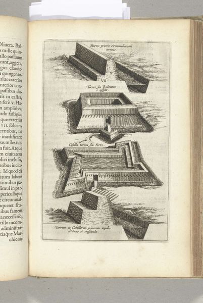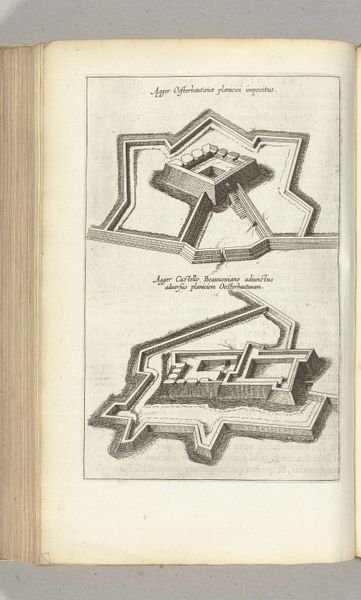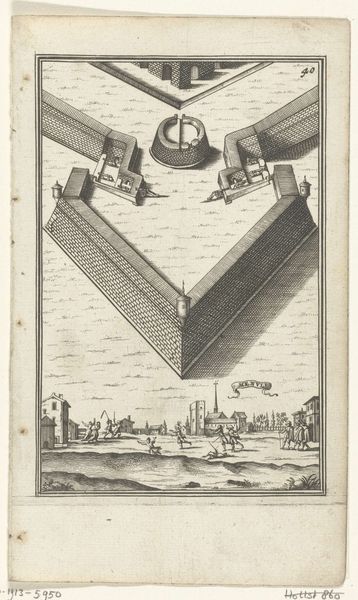 Curator: I’m struck by the sheer verticality of this etching; it emphasizes upward thrust and linear progression, doesn’t it? Editor: Indeed. Here we have Willem Hondius's "Uitbouw van schanskorven, 1629", made circa 1629-1631, on display here at the Rijksmuseum. But beyond formal assessment, what do we make of it historically, socially? Its direct translation to English is, “Outbuilding of gabions". I see labor, hierarchy, and immense strategic investment. Curator: Strategic, yes, but beautifully rendered. Note the composition; a clear foreground, middle ground, and a background that fades almost into abstraction. This engraving utilizes lines and precise detailing. I am fascinated by its geometry and scale. Editor: While it presents geometric beauty, its function isn’t simply aesthetic. Consider the title. A gabion is a cage or basket filled with earth or rocks, used to build fortifications. This structure embodies military engineering during the Dutch Revolt; a testament to siege warfare. Curator: You’re right. One cannot ignore the contextual background in the Eighty Years' War with Spain. The print is of course informative, intended for wider audiences than just soldiers. Still, observe the engraver's mark—the work achieves technical excellence through line work. Editor: Technical skills aside, doesn’t this elevate brutal machinery into something palatable for public consumption? An object of statecraft and propaganda, sanitizing conflict. Is it really "beauty," or skillful visual rhetoric deployed during a time of incredible violence? Curator: I suppose that looking so closely at construction makes us less likely to see devastation. It is thought provoking. Hondius, indeed, offered a unique viewpoint here. Editor: Agreed. Through contrasting the historical lens with the language of aesthetic formal principles, the picture invites many levels of interpretations that enrich this image with an incredible significance to Dutch history.