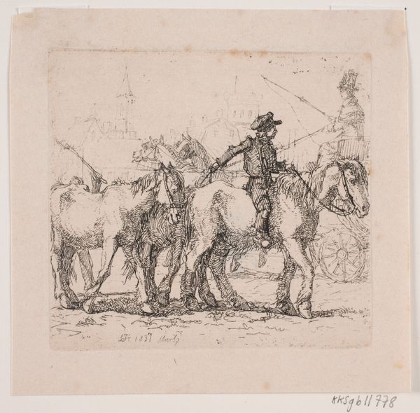 This is H.P. Hansen's illustration for Hans Christian Andersen's "The Snow Queen," part of "Fairy Tales and Stories, Volume 1." Hansen, working in 19th century Denmark, uses the visual language of his time to depict a world of fantasy and moral instruction. The fairy tale, steeped in the patriarchal values of the era, tells of a young girl's quest to rescue a boy from the Snow Queen’s icy clutches. Here, we see the Queen's elaborate carriage pulled by horses, but look closely - these are royal figures, perhaps symbols of the power and privilege that enable the Queen's dominion. What does it mean to have your subjects become the very instruments of your power? The tale, and this image, invites us to reflect on the role of women, power, and the emotional landscapes of childhood, offering a glimpse into the societal expectations and fears of the time.