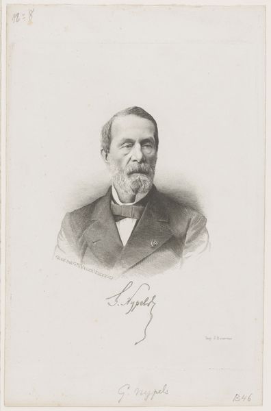 Curator: I am struck by the sitter's penetrating gaze. It’s like he's appraising you even now. Editor: Yes, a commanding presence. This is José Ferraz de Almeida Júnior's "Bust of a Man," dating to 1850. It’s an oil on canvas, held here at the Museo de Arte de Sao Paulo. It seems quite formal. Curator: Incredibly so. The gentleman's meticulous beard, his carefully knotted tie. It's almost theatrical, steeped in the visual language of 19th-century bourgeois respectability. This was a period of emerging Brazilian national identity; portraiture played a crucial role in solidifying hierarchies, gender roles and power structures. One has to wonder about the unseen power dynamics involved when Almeida Junior painted this work. Who was this man and what role did he play in Brazil’s early national story? Editor: Right, and the iconography bears it out. Dark suit, subdued colors. There's a somber mood to the whole piece, reinforced by the shadowy background. Consider the power associated with a man displaying a strong, but neatly tamed, beard. It's a controlled virility. Also, the tie’s perfect bow – it suggests the binding nature of societal expectations and tradition, a perfect accessory of status and control. Curator: Definitely. And this controlled representation of masculinity serves specific political purposes. Images like this upheld an ideal of civilized masculinity crucial for the political stability demanded during that time, an era rife with abolition debates, growing urban hubs, and elite desires of appearing 'modern'. It makes you ponder whose stories and representations are prioritized, whose histories get literally "painted into" our national narratives. Editor: Absolutely. Looking closely, there are so many visual cues related to a yearning for order, balance, almost like a ritualized display of identity. I am captivated by his eyes though, their slightly reddened and fatigued quality that speaks to inner tension despite the outward appearance of composure. It is an enduring image – the eternal, perhaps, of presenting a composed facade for posterity. Curator: Yes, a carefully manufactured composure that belies what I would suspect was a period of huge political and social upheaval, here in Brazil, which Almeida Junior does so skillfully represent! What this artwork showcases about image, nation, gender, and race are important to note, consider, and deconstruct even to this day! Editor: A captivating reminder that images not only represent, they participate in shaping the very culture around them.