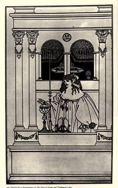 Aubrey Beardsley made this drawing using pen and ink, likely for a print publication. The stark contrast between black and white defines Beardsley's distinctive style, highlighting the intricate details of the design and the sensuous forms of the figures. Observe how the artist's meticulous use of line, dots, and cross-hatching creates a rich texture, bringing the scene to life. The crispness of the ink on paper allows for sharp definition, lending an almost photographic quality to the image. His aesthetic was considered decadent, in line with the artistic movement known as "art for art's sake." Given the printing process, it is easy to imagine these images being reproduced and consumed at scale; they were very much luxury commodities, made accessible to a wide audience. The amount of careful work that went into creating this artwork is undeniable. Considering the materials and processes involved, we can appreciate the labor and skill that went into producing this striking image, challenging conventional hierarchies between craft and fine art.