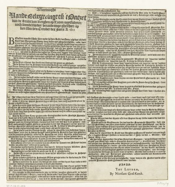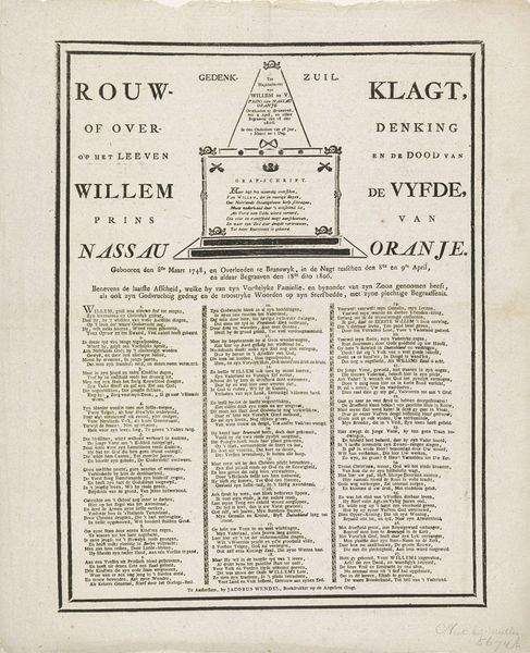 Curator: Look at this intriguing piece, simply titled "Volksoverweging" – or roughly translated as "People’s Consideration." It's an engraving and piece of typography from 1787, held at the Rijksmuseum. It comes to us from Martinus van Kolm, both artist and, quite literally, printer. Editor: Immediately striking. The contrast between the image and dense text creates an almost claustrophobic feel. Visually, I’m drawn to the city scene at the top, despite the overwhelming amount of text. Is it an etching or some form of early lithography perhaps? The materiality appears cheap, perhaps suggesting mass-produced propaganda or social critique meant for broad dissemination? Curator: It’s an engraving, likely produced on a copper plate and then printed using moveable type for the text. As for your idea of broad dissemination, you may very well be on to something: this artwork coincides with brewing political unrest in the Netherlands. The work reflects the anxieties and patriotic sentiments around civic engagement and self-governance at a really pivotal moment. Editor: Ah, so the subject matter addresses civic engagement, which the very technique and material clearly reinforces through print as democratic distribution of ideas. Tell me, does the cityscape figure prominently in this theme of national consideration, since it literally puts center-stage what we imagine at stake? Curator: Indeed! It depicts citizens weighing decisions in front of a grand building. Given the political climate of 1787, where the Patriot movement was challenging the established order, this work served to catalyze thought and encourage people to join. The imagery of a city being built and protected served as a potent reminder of collective responsibility, too. Editor: Given all this text integrated so meticulously alongside the visual space, what textual details strike you as fundamental to its purpose? The piece's narrative is very complex! Curator: In a nutshell, Van Kolm reminds his readers of a time of foreign subjugation and loss to stoke patriotic sentiment as a response to renewed demands for Dutch liberties. "Short comprehension out of people’s consideration," as it states so plainly right up front! Editor: Thinking of that, I wonder whether Van Kolm even aimed at an audience among the less wealthy citizens, even though its visual narrative tries for the impression of breadth… It has a real "something for everyone" spirit, and a deep-seated sense of history weighing it down! Curator: A spirit caught nicely, I think! Its engagement with its moment is a valuable glimpse into that history in and of itself.