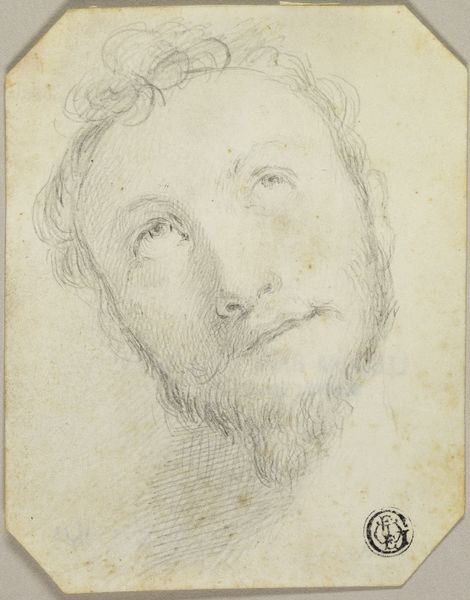 Curator: Here we have Federico Barocci’s “Study for the Head of Christ.” It's a drawing using black and red chalk with some pastel, currently held at the Harvard Art Museums. Editor: Wow, that upward gaze is intense. It's like he's seeing something beyond our world, with such sorrow in his eyes. Curator: Barocci, known for his preparatory studies, focuses on the texture of the paper and the layering of chalk. The paper's weave seems to contribute to the overall soft, almost ethereal quality. The red chalk also gives an interesting vitality to the blood. Editor: It does! You see the artist grappling with capturing a sacred moment. It feels like a raw, unfiltered emotion, doesn't it? And the unfinished nature of the work somehow adds to the vulnerability. Curator: Absolutely. The physicality of creating this image underscores the intense labor and the social demand for devotional images during the Counter-Reformation. It's a powerful intersection of faith, commerce, and art. Editor: The humanity, that's what really resonates. It reminds us of the pain, yet also the hope. So powerfully rendered through simple materials. Curator: Indeed, a tangible reminder of faith made manifest.