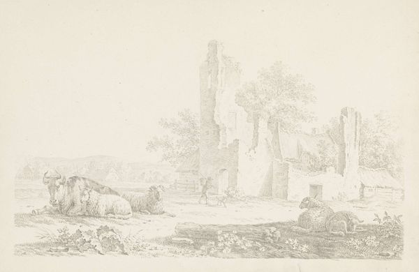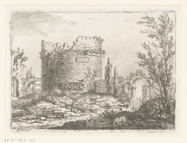 Curator: Let’s turn our attention to this striking ink drawing by Martinus Antonius Kuytenbrouwer Jr., created in 1854. It’s entitled “Ruïne van Kasteel Brandenbourg” and currently resides here at the Rijksmuseum. Editor: Immediately, I’m drawn to the incredible detail. It feels… well, melancholy is the first word that springs to mind. You can almost hear the whispers of the past carried on the breeze through those broken walls. Curator: That’s a keen observation. Kuytenbrouwer, working in the Romantic tradition, was deeply interested in capturing picturesque ruins, and castles held particular fascination for artists of the era. This drawing highlights the way the medieval past was being re-imagined during the 19th century. Editor: It's the little things, isn't it? The way the ink captures the rough texture of the stone, the hint of reflections in the water… it gives the ruins a real weight, a tangible history. Curator: Indeed. Drawings like these played an important role in shaping public perceptions of history and heritage. They were often reproduced and circulated widely, contributing to the rise of historical tourism. People travelled to experience the Romantic ideals they saw represented through this kind of landscape work. Editor: There’s something powerful about ruins, isn’t there? They are like frozen poems of time passing and civilization ending. What does it say, do you think, about the impulse to not only visit them but make an artwork based on what’s been left behind? It suggests not a memorializing but something grander, bigger. Curator: Absolutely. The picturesque style often associated with Romanticism suggests this search for the sublime in something imperfect. Instead of a vision of an idealized classical structure, one instead looks at a ruin and sees the strength and longevity of humankind itself. Editor: So, it's like a portrait of time, in a way? Not just history, but the relentless march of it? Now I look at it in a new way! I will go on that trip for the perfect Romantic ruin shot. Curator: Precisely. It’s a lens through which to contemplate the fragility and resilience of human endeavors across time, all contained in a drawing made over a century and a half ago. Editor: Exactly! A ruin within a ruin! Thank you for that thoughtful illumination.
