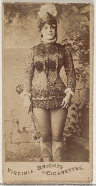 This is a carte-de-visite from the Actors and Actresses series produced for Dixie Cigarettes, featuring Kate Uart. The most striking symbol here is the mace she holds aloft, adorned with a plume, reflecting power and authority. The mace is not merely a stage prop but echoes motifs of dominion. Think back to ancient rulers bearing scepters, symbols that have evolved to convey authority. Over time, the mace transcended mere representation to become a symbol of institutional power. In this portrait, we see this symbol juxtaposed with the performative identity of an actress, complicating and perhaps critiquing the very notion of authority. It taps into collective memories of sovereignty while playing with the transient nature of celebrity. This creates a tension, a visual discord that engages the subconscious mind, forcing us to confront the interplay between image, power, and performance. This symbol resurfaces, evolves, and takes on new meanings in different historical contexts.