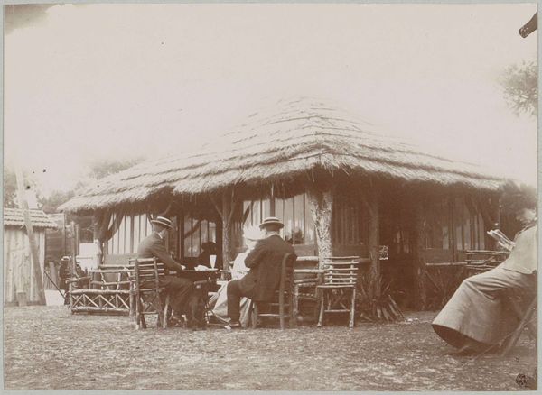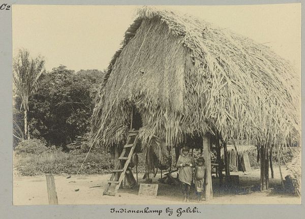 Curator: What a fascinating tableau. We’re looking at a gelatin silver print titled "Batakse vrouwen en kinderen poserend voor een huis op Sumatra," which translates to "Batak women and children posing in front of a house in Sumatra." It's believed to have been captured sometime between 1900 and 1920 by Christiaan Benjamin Nieuwenhuis and currently resides at the Rijksmuseum. Editor: The immediate feeling is one of quiet dignity. There's a stillness, almost posed theatricality, in the way the figures interact with this rather grand dwelling. It’s hard not to read it as an attempt to capture a particular moment in their history and cultural identity. Curator: It's true. Nieuwenhuis, through the lens of his camera, freezes a moment ripe with cultural symbolism. The house itself speaks volumes. Notice the elaborate decorations, the elevated structure – these architectural elements are deeply embedded with cosmological and social significance for the Batak people. What sort of reading can you extract from this architectural “memory?” Editor: Absolutely. The figures too contribute immensely to the story. The women’s positioning, the children’s gaze – there's an interplay between their individual presences and their collective representation of Batak culture at that time. It raises questions about representation, visibility, and whose narrative is truly being documented here, though. Given it’s a colonizer-era photograph, I cannot avoid these socio-political lenses. Curator: A valid critique. The very act of photographing indigenous communities was fraught with power dynamics. Yet, within that problematic framework, we can still discern elements of self-representation, or at least a negotiation of identity. The architectural image provides, indeed, a sense of self-determination. Editor: Perhaps the ornamentation is a sign of resilience? As a historian, I'm drawn to thinking about this image within the broader context of Dutch colonial influence, how power was projected through images and how local populations found agency within this. It’s a powerful reminder of the complexities inherent in the history of photography itself. Curator: Yes, it acts as a point of contact that reminds the viewer that photography as memory storage becomes part of a much wider discussion surrounding historical narration, ethnic representation and cultural psychology. It has certainly ignited a vibrant exchange about this captivating work. Editor: Indeed, and hopefully spurred some reflection on the multifaceted history held within a single frame.