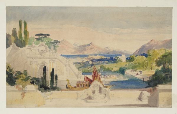 Curator: This watercolor work, titled "Taormina, Sicily," is by Denman Waldo Ross and is part of the collection at the Harvard Art Museums. It captures a coastal view in delicate washes of color. Editor: It has a very serene quality; the muted palette and soft edges create a dreamlike atmosphere. The craftsmanship is really evident. Curator: Absolutely, and watercolor, by its nature, lends itself to that ephemeral feel. I’m particularly interested in the relationship between Ross’s choice of medium and the historical context. Travel sketches like this one, would have often been created for a patron. Editor: I was thinking about the production of these pigments, where did the artist buy them, and how would someone like Ross have experienced Taormina compared to the local labor that supported tourism to Sicily? Curator: Those are crucial questions! Considering the social and economic structures at play informs how we interpret this picturesque scene. Editor: Indeed. It allows us to see beyond the idyllic surface and consider the broader network of production and consumption that made such images possible. It's a quiet piece, but it speaks volumes.