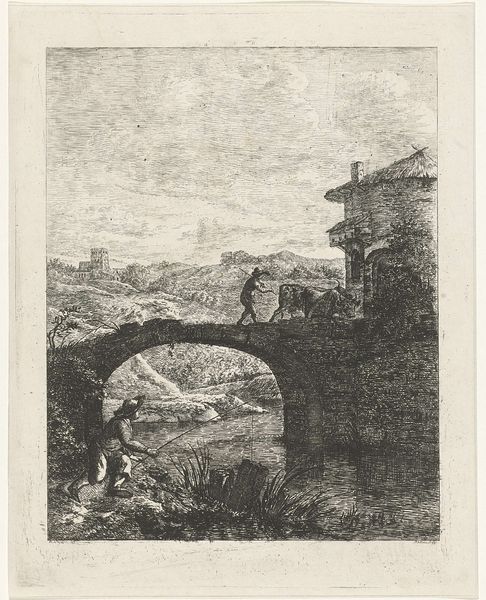 Editor: So, this is Bartholomeus Breenbergh's etching, "Ruïne van het Colosseum," made around 1639-1640. It's such a detailed print. What really strikes me is the contrast between the imposing, crumbling ruins and the tiny figures scattered around. It feels… melancholy. What do you see in this piece? Curator: It’s evocative, isn’t it? The Colosseum, a powerful symbol of Roman imperial might, is here rendered as a ruin. Breenbergh presents us not just with an architectural depiction, but also with a potent meditation on time, decay, and memory. Look closely—what feelings do these ruins stir in you? Editor: Definitely a sense of loss. Like, this was once the center of the world, and now nature is reclaiming it. Curator: Precisely! Consider the symbolic weight of ruins in the 17th century. They represented the transience of human achievement, the inevitable fading of even the grandest empires. Breenbergh is inviting us to contemplate the cultural memory embedded within these stones. And how do the figures in the foreground contribute to this? Editor: They seem… insignificant against the scale of the Colosseum, like reminders of humanity’s short lifespan compared to history. Curator: They emphasize the human connection, and what endures. Even as empires crumble, human lives, on a smaller scale, continue among the wreckage. The light is intriguing, wouldn’t you say? Almost as if hope is rekindled among loss. What has this prompted you to reconsider? Editor: I initially saw just the decay, but now I notice the subtle hints of resilience – both in the enduring structure and in the people moving through it. It’s not just about what's gone, but about what remains and the possibility of new beginnings. Curator: Indeed. The image beautifully balances a melancholic reflection on the past with a quiet affirmation of the human spirit's continuous presence and its own unfolding future. A poignant message, wouldn't you agree?