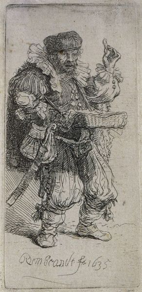 Initially, Rembrandt was fascinated above all by pathetic wretches compelled to beg for alms. Later, he also developed an interest in other colourful city folk, which he usually depicted in the same minuscule format. In these six etchings, he portrayed a quack in outmoded clothing, two Polish soldiers, two street musicians (an organ grinder and a fiddler) and a skater.