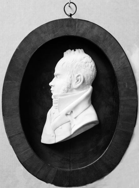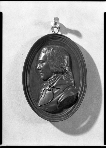 Editor: Here we have a portrait of John Horne Tooke, a rather severe gentleman rendered by James Tassie. It's diminutive in size, just a few inches, and looks almost like a coin. I wonder, what do you see in this piece? Curator: It’s intriguing, isn’t it? I am immediately drawn to the precision, the sheer detail Tassie achieves on such a small scale. There is an almost defiant expression on Tooke's face, wouldn't you agree? The piece feels like a statement about power and intellect. What does it evoke in you? Editor: I see your point about the precision and the subtle defiance. I hadn’t really picked up on that before. Curator: Exactly. Isn't it amazing how a tiny artwork can hold so much? I'm left wondering about Tooke's story. Editor: Me too! It makes you want to dig a little deeper into history.