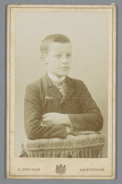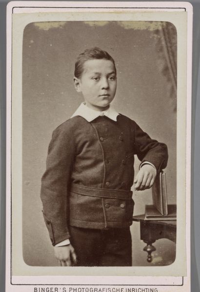Carel Eduard Westerborg, a photographer from Arnhem in the Netherlands, made this albumen print of an unknown boy. The image is an example of how photography served the needs of middle-class society in the late nineteenth century. Photography was still a relatively new medium. While it had become more accessible, it was still often used for formal portraiture that mimicked the conventions of painting. In this case, the boy is dressed in a suit and tie, indicating a certain level of social standing. The stern look and formal pose reflect the values of the time, emphasizing respectability and decorum. It is important to remember that our understanding of images is always shaped by the social and institutional context in which they are made and viewed. By researching photographic studios in the Netherlands, and exploring archives of similar images, we can understand more about how the rise of photography changed visual culture and social norms.