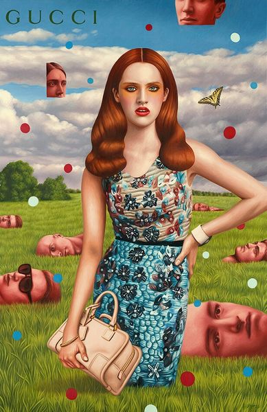 Alex Gross painted 'Umbrella' sometime after 1968 with oils on canvas. It presents an Asian woman sheltering under an umbrella while surrounded by floating green male heads. Gross’s paintings often reflect our immersion in consumerist culture and the effects of globalization. Consider the painting's elements: the Louis Vuitton bag, the umbrella protecting her from a non-existent rain, and the many green heads hovering around her. What do these imply? The rise of global brands and the creation of international markets has led to the adoption of western cultural norms, especially in Asian societies. Simultaneously, the green heads could represent the ever-present gaze of western patriarchy, a concept famously theorized by Laura Mulvey. Gross seems to be commenting on the individual within our modern, globalized world. To fully appreciate this work, one could research the history of globalization, westernization, and the rise of consumer culture, as well as the cultural and political theory. By exploring such contexts, we deepen our understanding of the artwork as a product of its time.