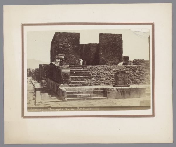 Editor: Here we have Giorgio Sommer's gelatin silver print, taken sometime between 1857 and 1914, titled "Restanten van het huis van Marcus Lucretius te Pompeï", or Remains of the House of Marcus Lucretius in Pompeii. Looking at this image of ruins, I'm struck by the layered effect – the relatively intact photo itself contrasting with the ruined structure it depicts. What are your thoughts on this? Curator: It’s fascinating to consider this image as a document of labor. Look at the labor involved in unearthing Pompeii, then Sommer's labor in producing the photograph itself. He’s not just capturing the remains; he's actively participating in their re-presentation, in their consumption by a new audience. Editor: So you see the photograph less as an artistic endeavor and more as a form of… documentation and consumption? Curator: Exactly! The choice of the gelatin-silver process, allows for mass production. Think about who consumed these images: archaeologists, tourists, the wealthy eager to possess a piece of antiquity. The photo becomes a commodity, divorced from the physical and social labor of its creation. The materiality of the ruin and of the photograph serve as indices of both ancient and modern social hierarchies. What does that say about our relationship to the past? Editor: I never considered the social impact and value-laden act of documenting labor as it related to archeology, I was viewing it through an artist's lens. Now I understand how labor is an index. Thank you. Curator: And I appreciate you pointing out its relationship to aesthetics - these historical depictions and new forms of consuming history open paths for new forms of representation to grow from their ruin.