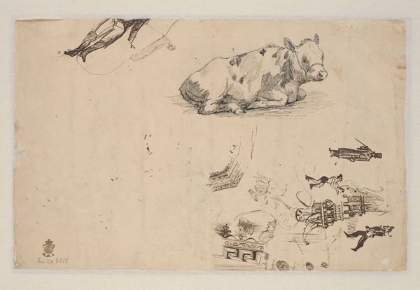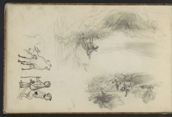 Charles-François Daubigny rendered this sketch of a rocky setting and rabbits in graphite. Daubigny came of age during a period of significant social upheaval in France, between the French Revolution and the rise of the industrial era. Daubigny, deeply influenced by the Barbizon School, sought to capture the essence of the French countryside. These artists rejected the formality of academic painting, turning instead to nature for inspiration. The seemingly simple sketch offers insight into the artist’s world. The rabbits, rendered with a delicate hand, might evoke a sense of the rural idyll. The loose style, combined with the landscape, suggests a move away from the structured compositions of the past. Daubigny invites us to consider the intersection of nature and art, and the quiet moments of observation that fuel creativity. In his choice of subject matter and technique, Daubigny challenged the prevailing artistic norms, thereby reflecting a shift in cultural values.