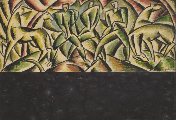 Dorrit Black created this color linocut print, titled 'Over the Mountains,' during the interwar period, a time when Australian artists were increasingly engaging with international modernist movements. The image presents an abstracted landscape, simplifying natural forms into geometric shapes and vibrant colors. Black's artistic education in Europe exposed her to Cubism and other avant-garde styles, which profoundly influenced her approach to representation. What's interesting here is to consider how Black mediates these European influences with the Australian landscape, a landscape itself laden with colonial history and national identity. How does she adapt these imported artistic languages to depict a distinctly Australian experience? To fully understand Black's contribution, scholars often turn to exhibition reviews and manifestos from the period, seeking to understand the complex negotiation between local and international artistic dialogues.