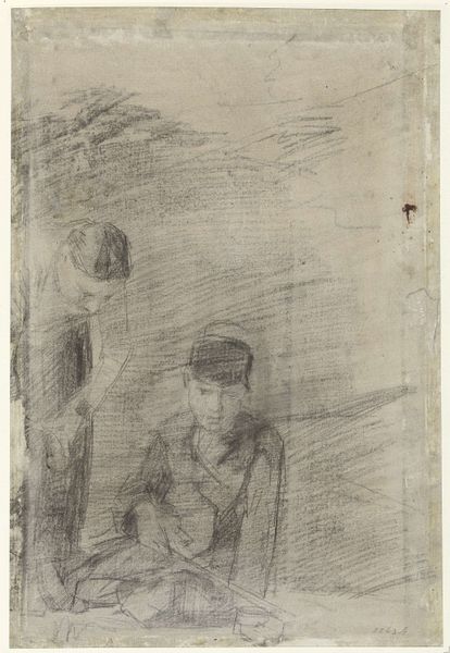 María Blanchard made this drawing, "Children," with charcoal and pastel, and it's like she’s feeling her way through the space, not trying to nail down a perfect image, but letting the process guide her. The colors are muted, mostly earth tones with a touch of blue, and the texture is soft, smudgy. Look at the way the charcoal is layered, almost like she's building up the forms from a haze. There's something really honest about the way Blanchard lets the materials speak. The lines aren't precise, but they convey a sense of depth and emotion. In the background, you can see these rectangular shapes, maybe a window or a doorframe, but they're not clearly defined. It's all about suggestion, about creating a mood. It makes me think of Paula Modersohn-Becker, another artist who was exploring similar themes of motherhood and childhood with a raw, honest approach. Ultimately, it's a reminder that art is an ongoing conversation.