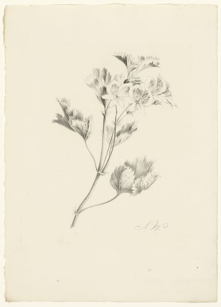 Anton Weiss created this drawing of two flowers with graphite, now held in the Rijksmuseum. The delicate linework captures the subtle gradations of light and shadow, giving the flowers a soft, almost ethereal quality. Notice how Weiss uses composition to create a sense of balance. The two flower clusters, though different in size and arrangement, are placed in such a way that they distribute the visual weight evenly across the page. The larger cluster, with its multiple blooms, is balanced by the smaller, more isolated flower on the right. The varying densities of the graphite create depth. The darker areas, where the graphite is more concentrated, define the forms and give the flowers their three-dimensionality. This careful modulation of tone is what makes the drawing so lifelike. Weiss's work invites us to appreciate the beauty and complexity of the natural world, captured through a refined artistic technique.