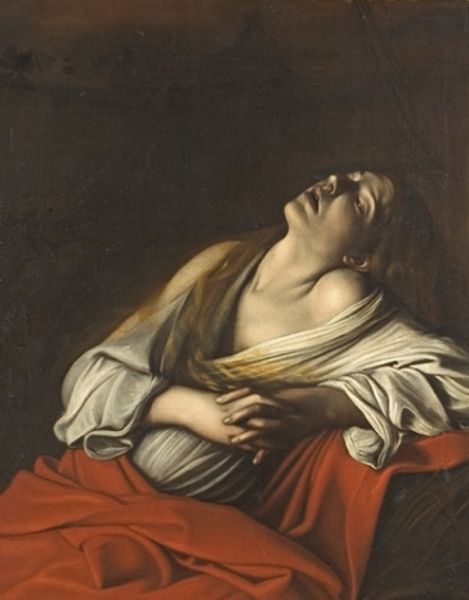 Editor: So here we have Girolamo Troppa's oil on canvas, *The Penitent St Mary Magdalene*, created sometime between 1665 and 1668. There's such an intense feeling of remorse and spirituality radiating from this image. How do you interpret this work? Curator: What strikes me is the performance of penitence, and how that intersects with the male gaze prevalent during the Baroque period. Mary Magdalene’s tears and upturned gaze invite the viewer into a moment of intensely personal grief, but simultaneously her partially exposed state makes her vulnerable. Consider, what societal expectations and religious dogma were being reinforced by presenting a female figure, even a repentant one, in this way? Editor: It's interesting that you bring up vulnerability and societal expectations. Do you think Troppa intended to critique these power dynamics, or perhaps reinforce them? Curator: It’s difficult to ascertain Troppa’s personal intent definitively. However, analyzing the painting through a feminist lens highlights how artistic depictions like this one often contributed to the construction of female identity within a patriarchal framework. The figure is individualized but, simultaneously, made representative of woman, repentance and redemption, no? The *male* artist, portraying an attractive *female* subject, for a powerful *male* patron - one has to ask for whose benefit the image was conceived and created. Editor: That reframing really changes my understanding of the work, thinking of the multiple layers of control and expected behavior that went into it. Thank you, this has been very enlightening. Curator: My pleasure! Art history offers a rich ground to examine historical biases and how those biases shaped not just art, but societal norms. I will definitely consider these issues when viewing baroque art in the future!