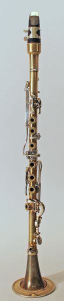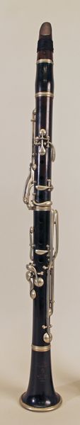 Curator: This beautiful instrument is a clarinet in A, crafted in France by Buffet, Crampon & Cie. sometime between 1860 and 1865. It’s currently held here at the Metropolitan Museum of Art. What are your initial impressions? Editor: Elegant and ornate. The brass against that figured wood is quite striking. There’s something almost regal about the craftsmanship; it gives off a very ceremonial vibe. Curator: Absolutely. This clarinet represents a period when musical instruments were elevated to the status of decorative art, mirroring the prevailing tastes of the bourgeoisie. Consider how the mid-19th century was really the flourishing point for design innovation to appeal to ever greater concert audiences. Editor: Yes, the symbolism resonates. The polished brass speaks of progress and ingenuity, yet it's tempered by the warmth of the wood, perhaps hinting at tradition. The key arrangement suggests a level of sophistication, an evolution in musical expression. What was this instrument typically used for, socially? Curator: Clarinets of this period found their place in opera houses, symphony orchestras, and smaller chamber ensembles. The increasing demand from middle-class concert goers boosted its manufacture. Instruments like this represented accessibility of music as cultural participation. It reflected the growing public sphere of the time. Editor: Thinking about cultural participation brings another set of considerations, which stem from how instruments and orchestras historically were platforms for displaying culture and heritage through music itself. How well might an instrument like this embody and broadcast those musical associations to its 19th century audience? Curator: To hear an A clarinet played at a civic function was really akin to hearing a symbol of culture itself. They definitely didn't have today's media for instant connection. What these kinds of artifacts did, and can still do today in a museum, is summon what it meant to hear live performance as being integral to shared identity. Editor: In viewing this lovely Clarinet in A, it strikes me how much we connect to the past, not only with historical records, but also through the tangible objects themselves. Thank you for enlightening us, Professor. Curator: My pleasure! I'm sure that it can bring musical insights to contemporary and future artists and instrument designers, alike.