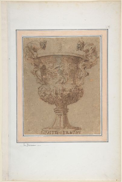 Editor: Here we have a photographic print of a silver goblet with a lid, showcasing decorations based on drawings by Hendrick Goltzius, dated before 1880. I'm struck by the intricate layering of forms and the very visible texture of the silver. What compositional elements do you find most compelling in this image? Curator: Formally, the photograph captures a study of verticality and carefully modulated curves. Note the crisp delineation of light and shadow, enhancing our perception of volume and materiality. The eye is drawn upward, tracing the intricate dance between positive and negative space orchestrated by the silversmith. This is a photographic documentation of craftsmanship, what about its structure do you note? Editor: The base anchors the piece, allowing the more decorative midsection to create a dynamic tension, and ultimately it leads your eye up to that charming lid. Do you think the composition guides our understanding of its purpose? Curator: Purpose is defined through its material realization. Consider the haptic experience suggested by the rendering of metallic sheen. Tactility is key. Now, remove the image and reimagine it without sheen, shape or structure; what remains? Editor: Very little. It becomes almost ephemeral, just an idea without physical presence. It shows how all the elements contribute to the viewing experience. Curator: Precisely. Editor: This exercise has illuminated for me the necessity of direct perceptual analysis. Thank you. Curator: Indeed, appreciating art through formal understanding cultivates more insight than solely depending on narrative explanations.
