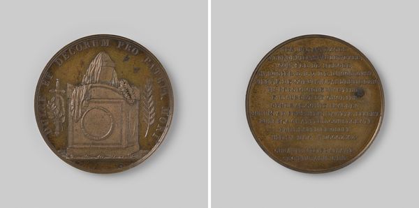 Editor: We’re looking at a bronze medal from 1832. The inscription reads, “Franse steun tijdens de Tiendaagse veldtocht en bij de verovering van de citadel van Antwerpen”—French support during the Ten Days Campaign and the capture of the Antwerp citadel. The medal feels like a quiet commemoration, but also maybe something more assertive, given the subject matter. What kind of statement do you think this medal is making? Curator: This medal speaks volumes about power dynamics and national narratives in 19th-century Europe. It’s not just a quiet commemoration; it’s an active assertion of French involvement and, arguably, dominance, in Belgian affairs. Remember that Belgium had only recently declared independence from the Netherlands in 1830. Editor: So, the French are positioning themselves as heroes? Curator: Precisely. It’s a very specific story that omits Belgian agency. Note how the inscription highlights the "French army" coming to the "aid of the Belgians." Consider the implications of that choice of words. Who is telling this story, and for what purpose? What is left out of this narrative? What was the role of Belgian revolutionary forces? It's a case study in how history gets molded into nationalistic mythology. The medal almost becomes a form of propaganda, inscribing a very specific and self-serving version of events into material culture. Editor: That's fascinating! I hadn't thought about it as active propaganda. I suppose I saw it more as a historical record, but you’re right—it’s a curated record with a very clear point of view. Curator: Exactly. Even something as seemingly neutral as a commemorative medal can be a powerful tool for shaping historical consciousness and solidifying political power. Now, think about contemporary medals and monuments: whose stories are they telling, and whose are they silencing? Editor: It makes you wonder about whose narratives are being pushed in similar ways today through different media. Thanks, I have something to chew on now!