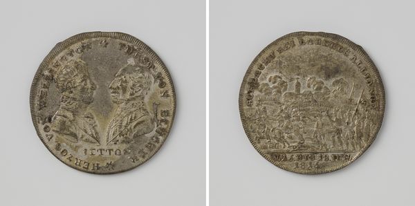 This is a silver medal of Viglius ab Aytta Zuichemus, chairman of the Privy Council in Brussels, created by Jacques Jonghelinck around 1577. The medal presents two faces each composed with meticulously inscribed text circling the edges. One side features a profile of Viglius, his features rendered with careful detail, conveying both status and personality through form. On the other face, a structure emerges, perhaps emblematic of vigilance or governance, its geometric shapes suggesting stability. Considering these structural elements, the medal operates within a system of signs. The portrait serves as an index, pointing directly to an individual, while the architectural motif may function as a symbol, representing abstract concepts through conventional visual language. The interplay between these signs invites consideration not only of what is represented, but also how meaning is constructed through visual rhetoric. Consider how the artist uses the very structure of the medal to convey power and legacy. The formal precision is not merely decorative; it is integral to the medal's function as a cultural artifact that embodies and communicates complex ideas about authority, identity and representation.