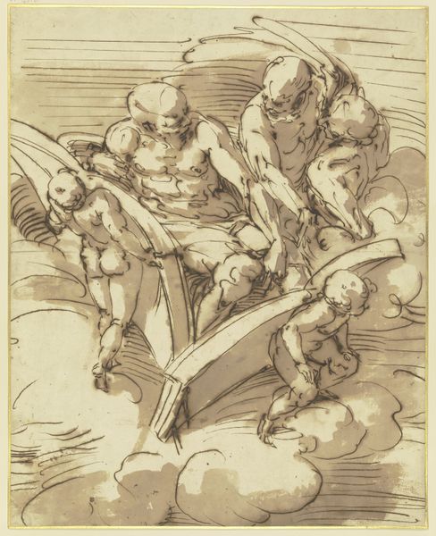 Luca Cambiaso rendered "Beheading of a Saint Writing His Credo on the Ground" using pen and brown ink with brown wash over traces of black chalk. Cambiaso made this drawing during the Counter-Reformation, a period marked by religious conflict and the persecution of those deemed heretical. The image resonates with the themes of faith, martyrdom, and defiance against religious oppression. The saint, on his knees, etches his creed into the earth, a final act of devotion, while the executioner raises his sword. This moment encapsulates a powerful intersection of religious identity, social injustice, and the ultimate sacrifice. The saint becomes a symbol of resistance, challenging the prevailing power structures of the time. The scene evokes a visceral response, inviting us to consider the emotional and physical toll of religious conviction and persecution. Cambiaso masterfully captures the tension between the saint's spiritual resolve and the impending violence. This work serves as a poignant reminder of the enduring human capacity for faith and resistance in the face of oppression.