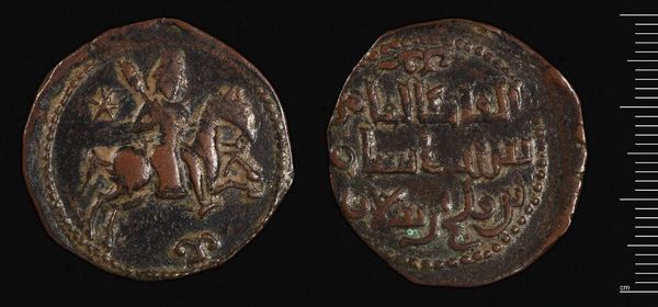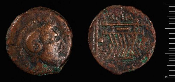 Curator: Here we have a follis coin of Heraclius from Nicomedia. This piece is attributed to Abd-al-Malik of the Umayyad Caliphate and is part of the Harvard Art Museums collection. Editor: It looks so old and worn, like a forgotten memory pulled from the earth. Curator: Yes, the weathering adds to its narrative. The composition on one side features what seems to be a standing figure, though heavily degraded. Editor: It makes me think about empires rising and falling, the slow grind of time turning monuments into dust and power into memory. Curator: Indeed. The materiality of the copper alloy speaks to both its utility as currency and its endurance as an artifact. It offers insights into economic and political shifts. Editor: Absolutely. It's a little portal. This small, worn coin whispers epic stories. Curator: Precisely, a physical representation of history, altered by time. Editor: I'm grateful it has survived to remind us about the past.