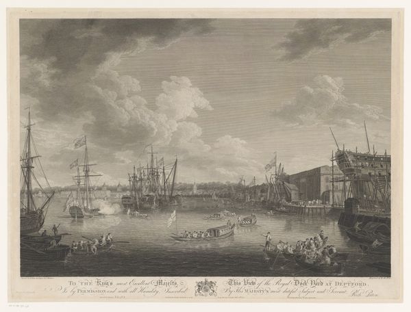 Pierre Charles Canot created this print of the Royal Dockyard at Chatham in the 18th century, a period of significant maritime expansion and naval power for Britain. This image presents an ordered view of the bustling shipyard, yet it invites us to consider the lives of the workers, many of whom would have lived in poverty. The grandeur of the ships being built contrasts sharply with the conditions of laborers who built them, reflecting the disparities of wealth and power in the era. The ships symbolize Britain’s global reach, facilitated by the exploitation of resources and people in colonized lands. Canot's print not only documents a moment in British history but also provokes contemplation of the complex social and economic structures upon which empires are built. It reminds us to consider the human cost of progress and the stories of those often rendered invisible in grand narratives.