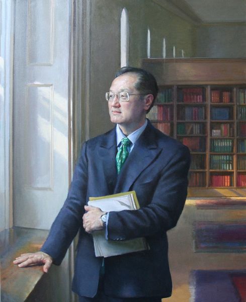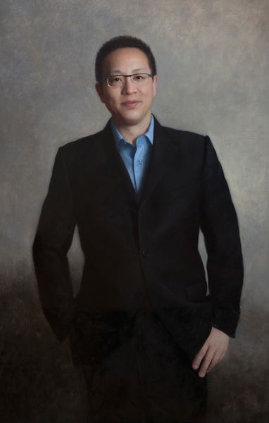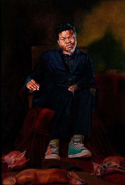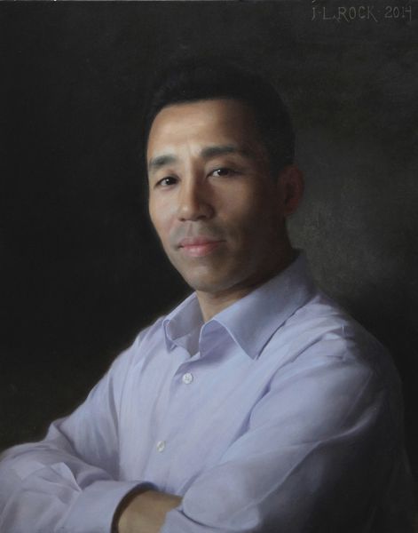 Editor: This painting by Joshua LaRock simply titled “Stephen Ling”, is rendered with oil paint and features a man in a suit in a classic pose. There’s a certain formality about it that feels… very traditional. What can you tell me about this portrait, in its historical context? Curator: The portrait, particularly one like this, occupies an interesting position. Traditionally, portraits were commissioned and served as representations of power, status, and legacy. How does this particular work fit within that tradition, or perhaps challenge it? Consider the subject's pose and attire. Editor: He's wearing a modern business suit, but the way he’s sitting feels very regal, almost like a king on his throne. Does this tension between modern attire and classic pose say something? Curator: It does indeed. It acknowledges the historical weight of portraiture, yet reframes it within a contemporary context. Is this a comment on contemporary power structures, or perhaps the sitter's own aspirations? And what role do institutions and cultural norms play in reinforcing this image of power and success? Editor: So the painting acts as a kind of social commentary, by adopting such an established genre? It is like the artist is adopting the traditional framework but adding something new and challenging. Curator: Precisely. The painting’s reception will likely be shaped by how viewers interpret these tensions, and also by where the artwork is displayed, its audience, and the other cultural products with which it is in dialogue. How is this painting different or similar to the work you are currently working on? Editor: This conversation gave me an entirely different view of the function of modern portraiture. Thanks for shedding light on it. Curator: And thank you, the insights of a young artist keep me alert.