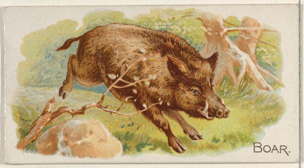 This chromolithograph of a European Otter is from the "Animals of the World" series, issued by Abdul Cigarettes around the turn of the century. The image reflects a period of increasing industrialization and global trade, where exotic wildlife became a source of both fascination and commodification. Consider the act of branding cigarettes with images of animals. It speaks volumes about our relationship with the natural world, framing it as something to be consumed, collected, and ultimately, controlled. The otter, caught mid-hunt with a fish in its mouth, becomes a symbol of both wildness and domestication, mirroring the complex dynamics of colonialism and the exploitation of resources. The emotional resonance of this image lies in its depiction of the animal in its natural habitat, yet divorced from it. It highlights the tension between our desire to connect with nature and our impulse to dominate it. The "Animals of the World" series is at once educational and deeply implicated in the power structures of its time.
