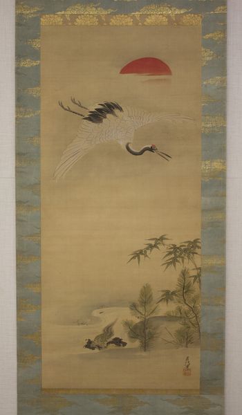 Tsubaki Chinzan painted "Hawk Grasping a Small Bird" with ink and color on silk. The composition arranges a dramatic encounter within a muted palette of grays and whites, creating a sense of immediacy. The texture of the hawk's feathers is meticulously rendered, contrasting with the smooth, blank space which heightens the tension. A semiotic reading of this painting reveals a stark illustration of power dynamics. The hawk, rendered with sharp, decisive strokes, embodies dominance, while the smaller bird signifies vulnerability. Chinzan employs traditional techniques not merely to depict a natural scene, but to explore themes of hierarchy and survival. The strategic use of negative space invites viewers to contemplate the broader implications of power and the delicate balance within the natural order. This balance is further destabilized by the precariousness of the moment, captured with unsettling clarity. The formal elements of composition, texture, and color are thus integral to the artwork's philosophical depth.