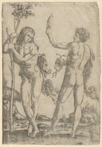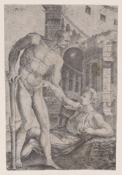 Marcantonio Raimondi made this engraving of two men in the early 16th century. The printmaking process begins by incising lines into a metal plate, which is then inked and pressed onto paper. Look closely, and you can see the network of fine lines that create the image, almost like a detailed drawing. Engraving was a highly skilled craft, demanding years of training to master the techniques of line weight and cross-hatching. This process allowed for the relatively inexpensive reproduction of images, democratizing art in a way previously unimaginable. Prints like these circulated widely, carrying artistic ideas across Europe. In this work, the contrast between the men’s physiques is striking. Consider how Raimondi’s mastery of line brings out the textures of skin and muscle. The very act of engraving, a labor-intensive process, mirrors the effort and skill involved in shaping the human form, whether through work or other means. Paying attention to materials, making, and context allows us to fully appreciate this artwork, bridging the perceived divide between craft and fine art.