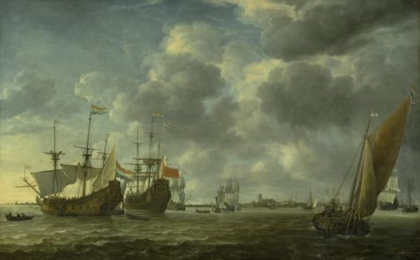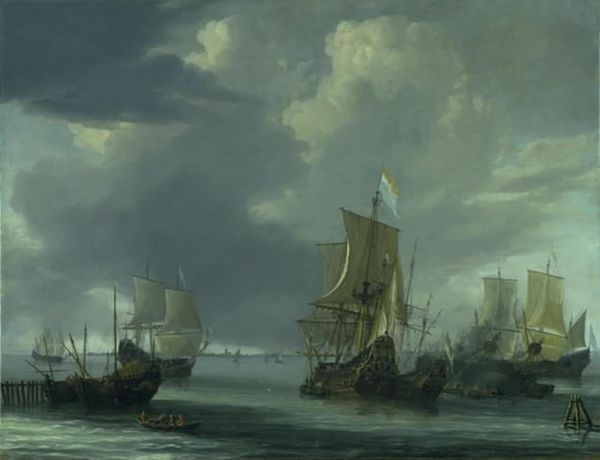 Reinier Nooms, who was also a sailor, made this evocative scene of Amsterdam harbor in oil on canvas. Nooms’s attention to detail reveals the material culture of maritime trade, and by extension, the burgeoning capitalism of 17th-century Netherlands. Look closely and you’ll see how the weight and texture of the paint mimics the density of the ships and roiling clouds. The layered application of pigment mirrors the labor-intensive shipbuilding process. The Dutch Republic was a major maritime power, its wealth built on seafaring trade. Canvases like this were commodities themselves, bought and sold on the open market like the ships they represent. Yet they also memorialize the labor of countless individuals: the sailors who braved the open seas, and the craftsmen who built and maintained the vessels. By considering the materials and the making, we can appreciate how Nooms's painting participates in a larger network of production and consumption. It’s a reminder that even the most beautiful works of art are tied to wider social issues of labor, politics, and economics.