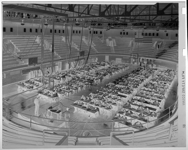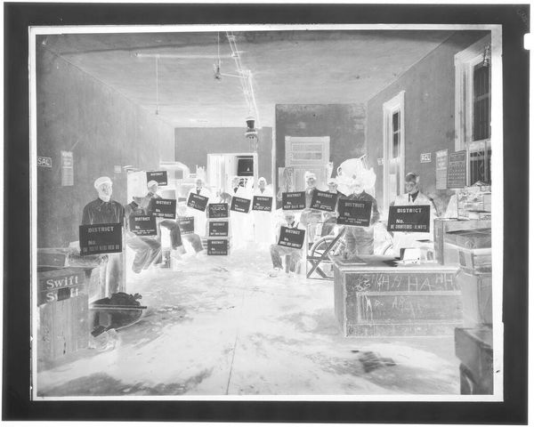 Editor: This intriguing gelatin silver print, Untitled, by Jack Gould, pictures a man at work amidst complex machinery. The sheer density of the equipment really strikes me. What can you tell me about this image? Curator: I'm drawn to the photograph's depiction of labor. Consider the vast infrastructure required for even mundane tasks. The materiality of this equipment—metal, wires, gauges—emphasizes the physical nature of work, a stark contrast to the desk job suggested by the man at the center. What does it say about consumption? Editor: So, it's not just about the man but the entire system of production and maintenance surrounding him? Thanks, I’ll definitely look at the image differently now. Curator: Precisely. The photograph challenges our understanding of value.