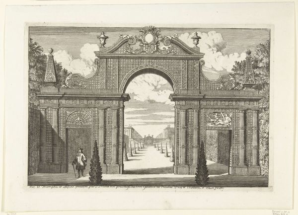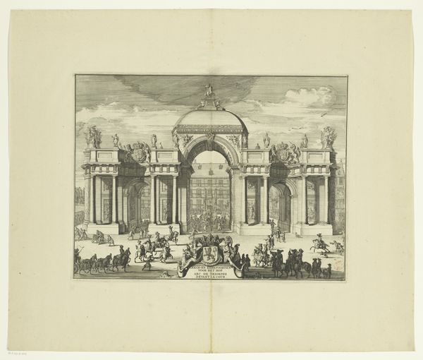 This anonymous engraving depicts a city gate in the form of a triumphal arch, adorned with Tuscan columns, capturing a bustling urban scene. The archway, a symbol of Roman imperial power, marks not just a physical passage, but also a ceremonial entry. This classical motif stretches back through time, its echoes resounding in Renaissance cityscapes and Baroque palace facades. The arch, once a declaration of military victory, has morphed into a signifier of civic pride and architectural grandeur. We see this symbol evolving, its essence enduring, even as its purpose shifts. The emotional weight carried by such forms is immense, tapping into our collective memory of power, achievement, and order. The triumphal arch, in its various guises, reflects our deep-seated longing for stability and glory. It is a testament to the enduring power of symbols to shape our perceptions.